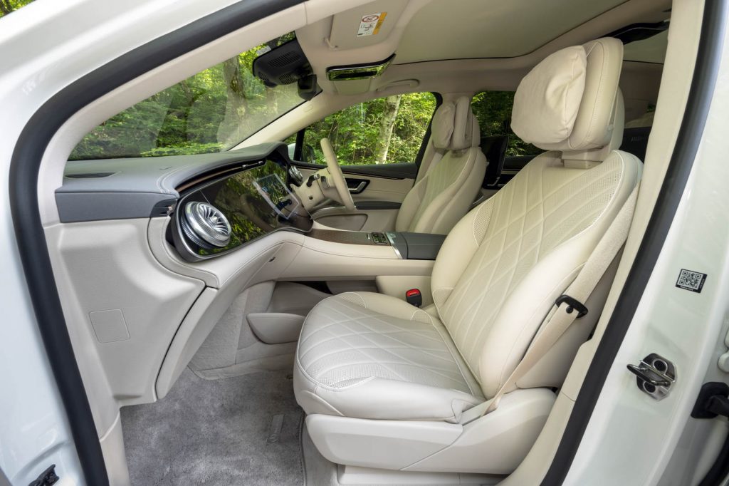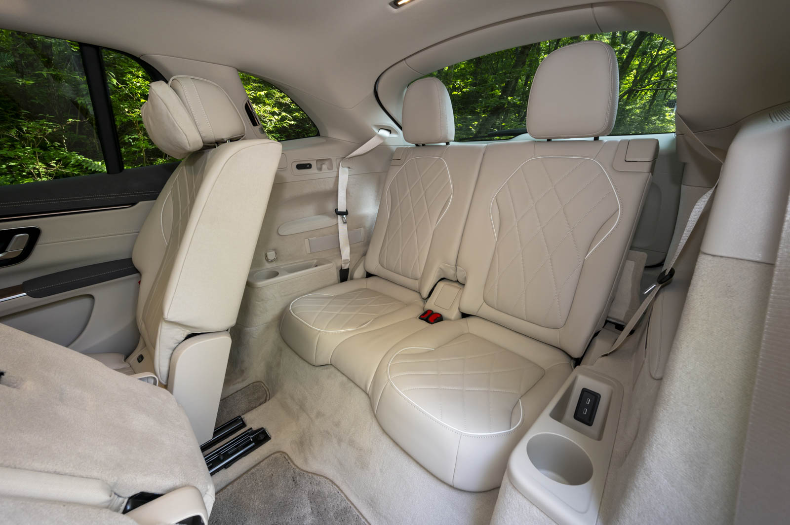 2列目シートは前後130mmの電動スライド式で、3列目へのイージーエントリー機能も備わっている。全席シートヒーター付きは暖房を極力抑えたくなるBEVの場合、とてもありがたい。たとえ高効率設計のエアコンを装備していたとしても!
