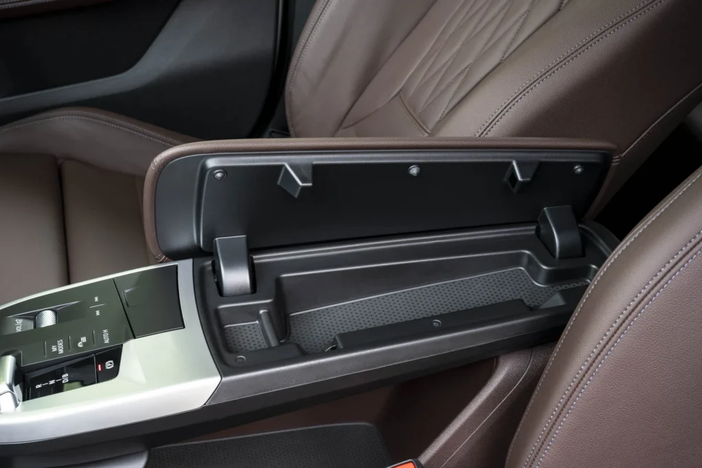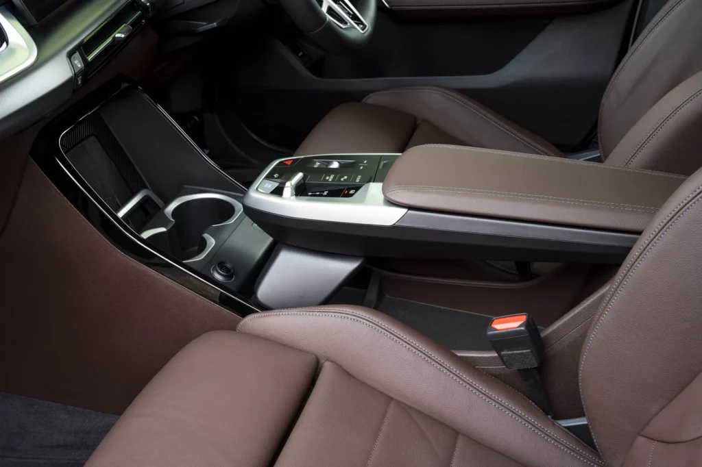 反対に小技が利いているのがセンターコンソールのスマートフォン置き場。スマートフォンを立てかけられるうえに、アームにより固定できるため、安定してワイヤレス充電できるのがうれしい。ちなみに、iX1はワイヤレスCarPlayに対応しているので、iPhoneユーザーならケーブルを用いることなく、インフォテインメントシステムとの連携も充電もできるのは便利である。