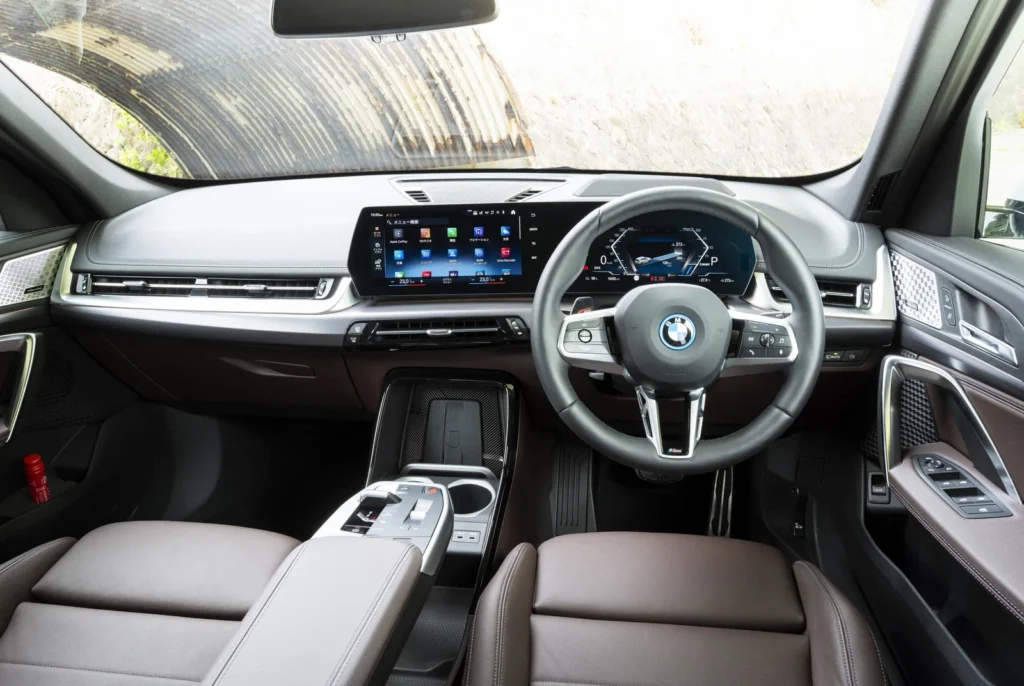 フルモデルチェンジにより、精悍さが際だつフロントマスクを手に入れたX1とiX1。BMWカーブド・ディスプレイを採用するコクピットも、iX1の先進性を象徴している。