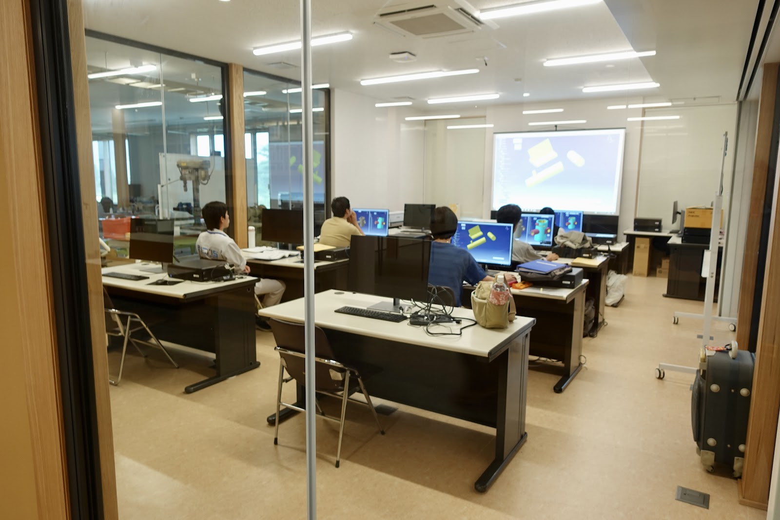 教室の中では、学生がCAD(キャド:設計ソフト)の学習をしていた。ここには、自動車業界御用達のハイエンドソフト「CATIA V5(バージョン5)」が18端末分用意されている。また、プログラミングのプラットフォーム「MATLAB(マトラボ)」を使用している学生も見られた。