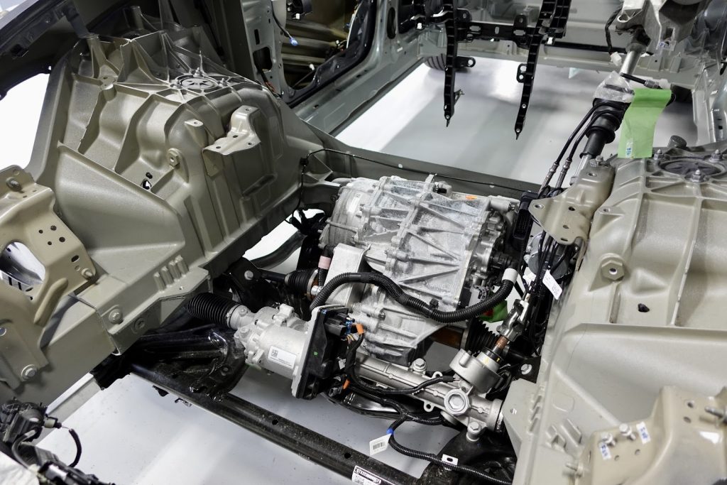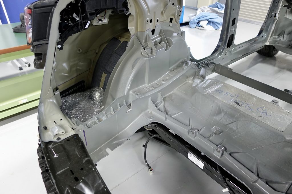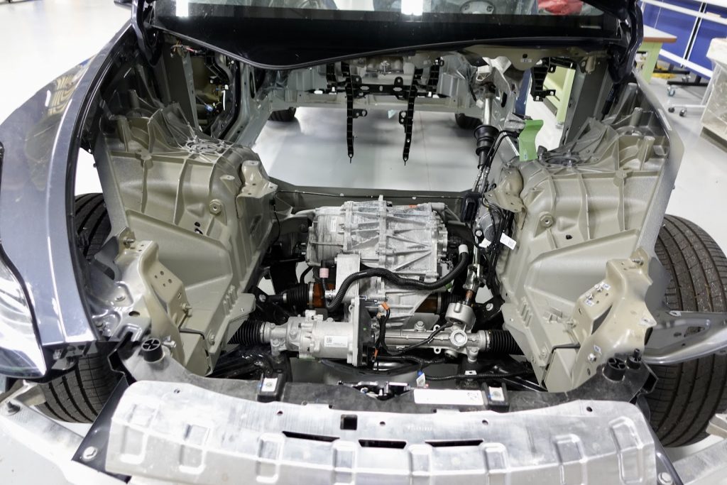 そのため、「アット3」の特徴の一つである「ブレードバッテリー」や、テスラの大型鋳造技術「ギガプレス」にて作られたパーツの実物を見ることができた。