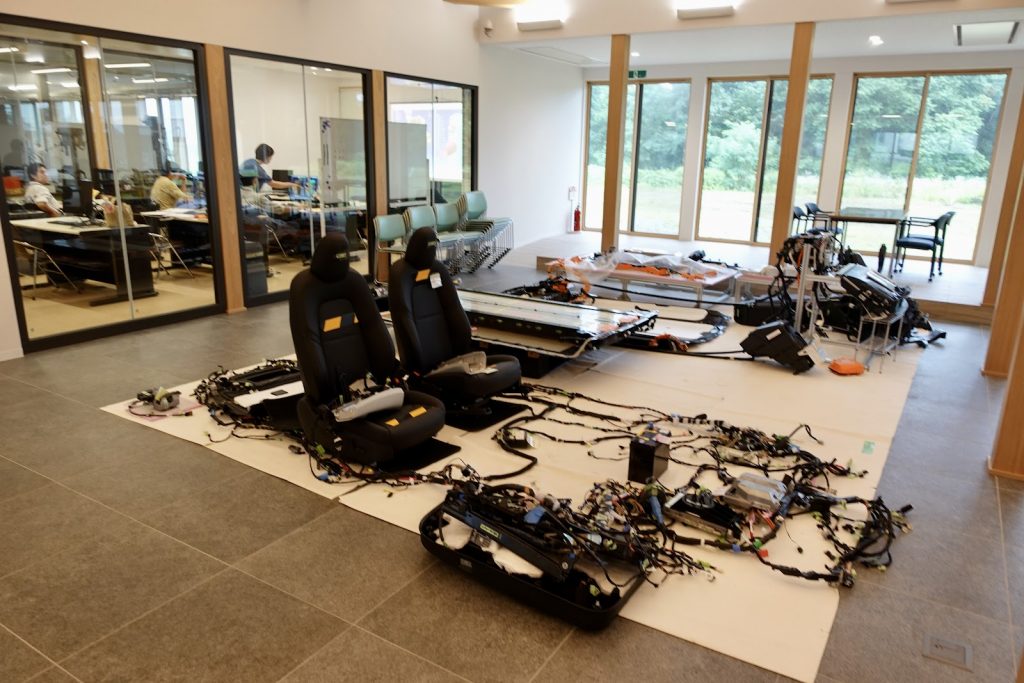 このキャンパスの大きな特徴は、テストコースを自前で持っているところにあるだろう。1周400mの外周を備えた舗装路面で、EVの完成車のほか自動運転のテストも可能だ。冬場は凍結したり積雪があるが、そういった厳しい環境でのテストを行えるのは逆にメリットである。EVの要であるリチウムイオン・バッテリー作りから実走テストまで行えるとは、なんとも羨ましい環境だ。