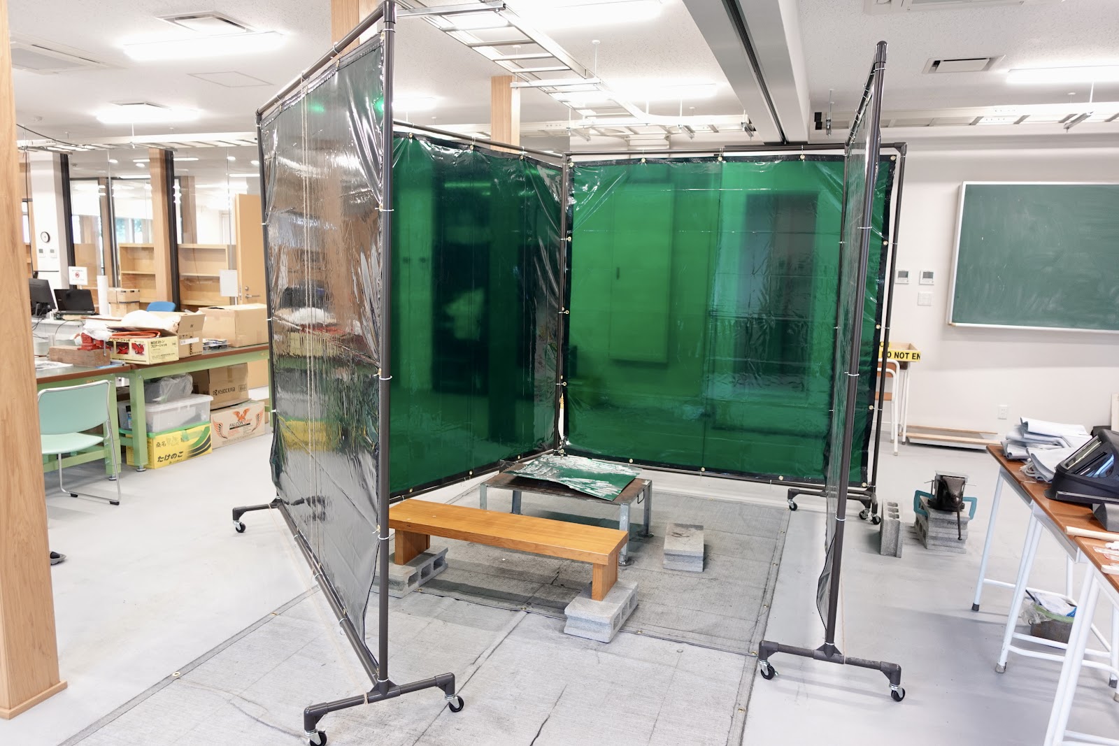 このあたりの“職人のカン”は、アナログな手法でなければ鍛えられない。メタバースなどでのシミュレーションは無理である。ちなみに教室内にあった溶接機の隣には、アルミ板を溶接したものが置かれていたが、熱で反りまくっていた。この失敗の経験が必要なのだ。