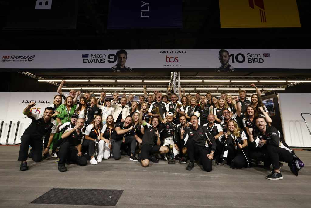 第15戦のあとミッチ・エバンスの1位を喜ぶジャガーTCSレーシングの面々。