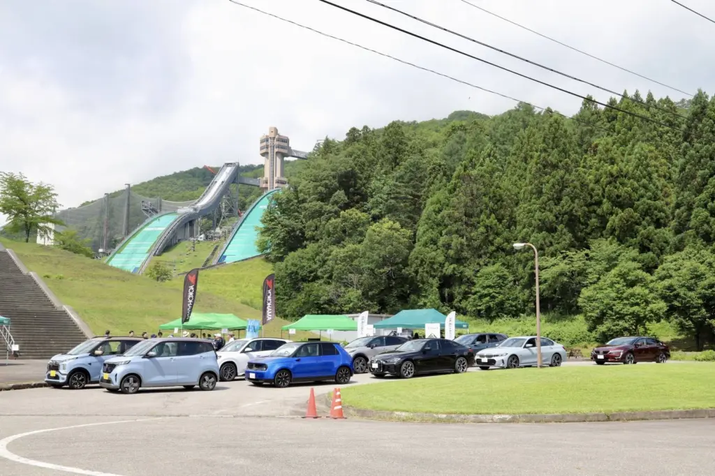 「EV気候マーチ」と称され、「エイブル白馬五竜駐車場」をスタートし田園を絡めた絶景ポイントで記念撮影の後、前日のEVラリーのゴールである「白馬ジャンプ競技場」までの7kmを走行する。今年は55台が参加。都合により、前日から宿泊できない参加者なども訪れた。後述する「EVラリー」も1日だけの参加とはなってしまった、楽しまれていたようだ。