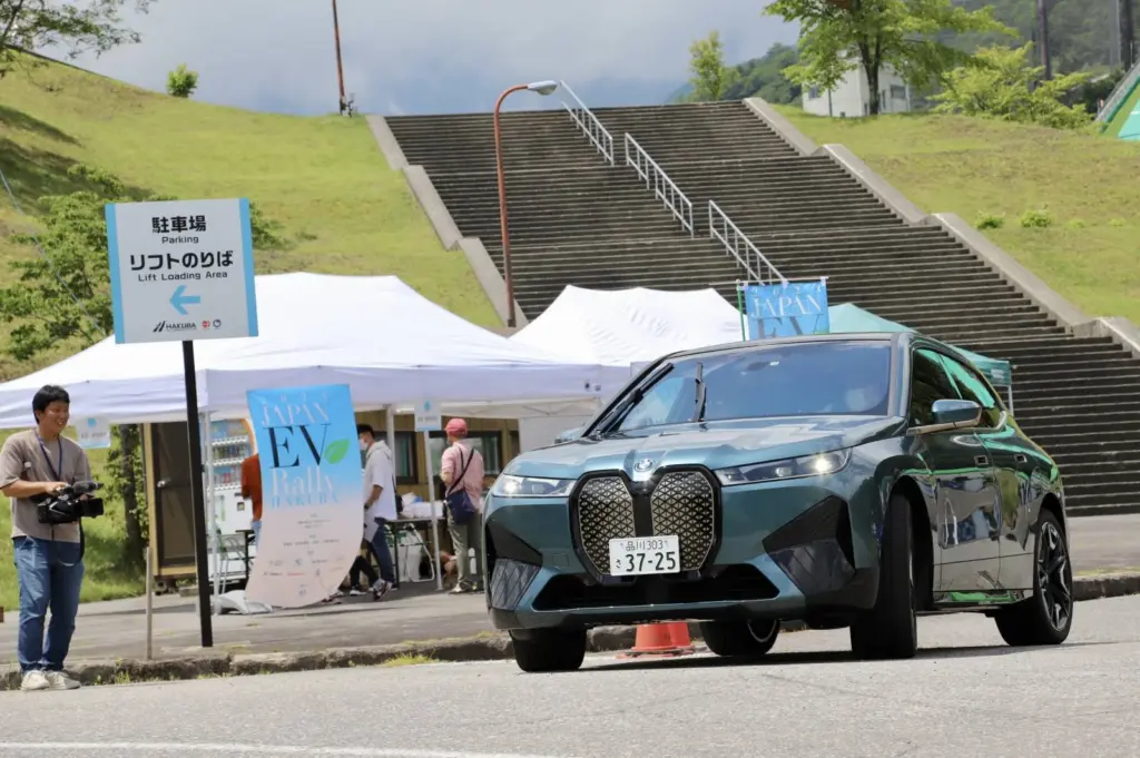 今年のラリーの参加台数は72台。10時から16時までに、エントリーしたEV・PHEVが初日のゴール地点である「白馬ジャンプ競技場」に到着した。ちなみに試乗車・展示用広報車も全て自走にて会場入りしている。