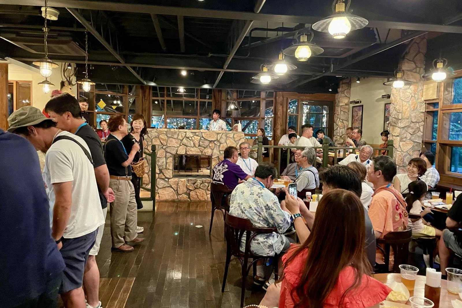 夜はいよいよ参加者同士の懇親会「EV白馬ナイト」の時間だ。ある意味目玉コンテンツだろう。会場は例年にならい地元のレストラン「チェリーパブ」で行われた。