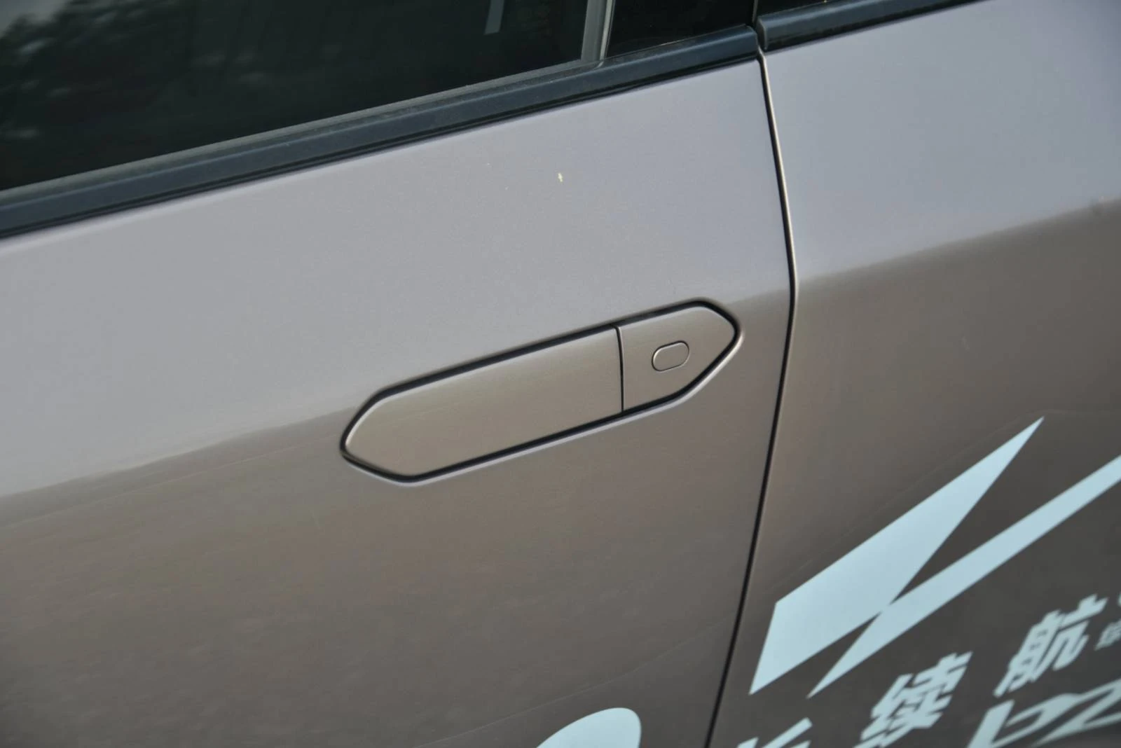 サイドはフロントほど複雑ではないものの、有機的なプレスラインからは造形美を感じ取ることができる。Cd値0.218を実現させた要素のひとつであるドアハンドルは、内蔵式のように見えるが、実は表面がフタとなっており、そこに手を差し込んで手前に引くことでドアを開けるスタイルとなる。初見ではどこかに挟まれないかと不安になる「真実の口」のようだったが、慣れてしまえばどうってことはない。