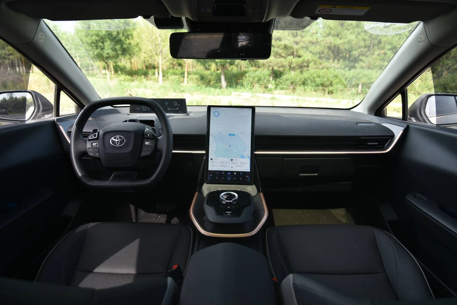 室内に乗り込むと、中央に位置する縦型12.8インチディスプレイがまず目につく。島型に独立したセンターコンソールから上に伸びるように位置するこのディスプレイはインフォテインメント、ナビゲーション、そしてエアコンの操作を一括しておこなうことが可能だ。エアコンの操作に関してbZ4Xでは物理ボタン式だったので、この辺りでは少し不便さを感じるかもしれない。縦型ディスプレイは日本車では珍しい存在なので、これはBYDから授かった知恵なのではないかと推測する。