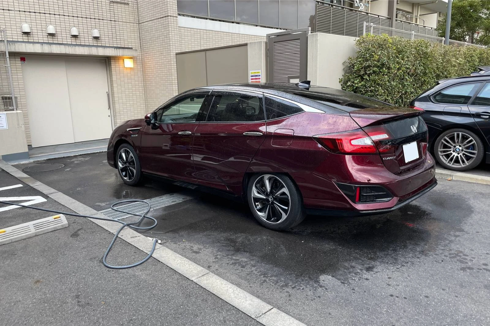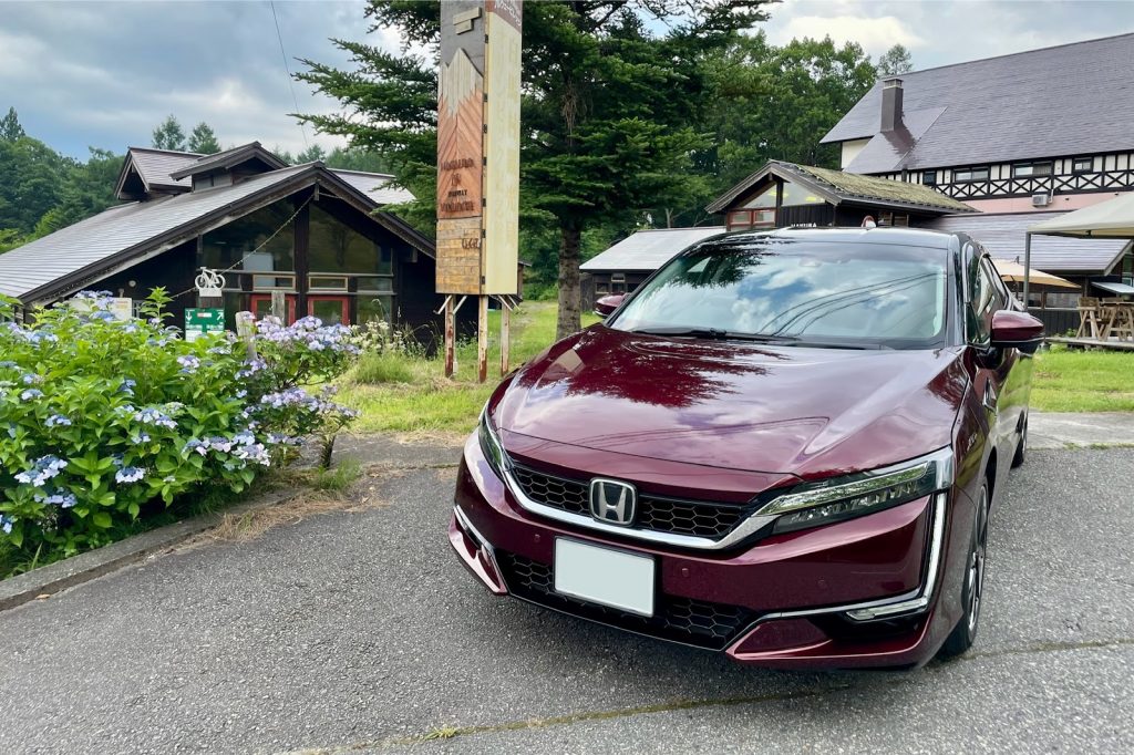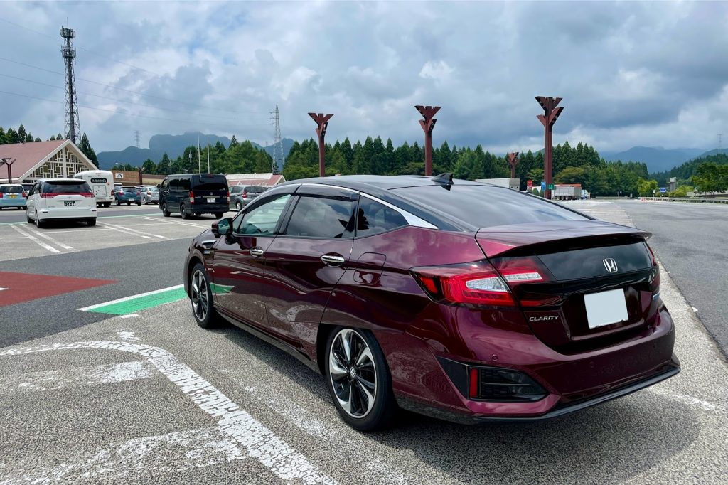 例年であれば東京より試乗車を自走で運ぶのであるが、今回は、現在日常の足として使用しているホンダの燃料電池車(FCEV)「クラリティ FUEL CELL」で参加した。