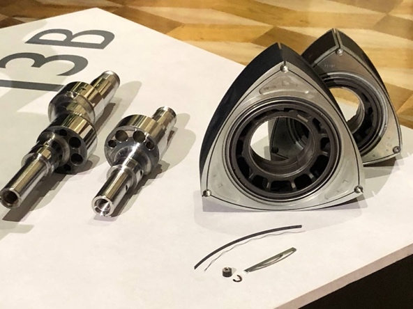 「8C」と「13B」、ローターとエキセントリックシャフトの比較。筆者撮影。
