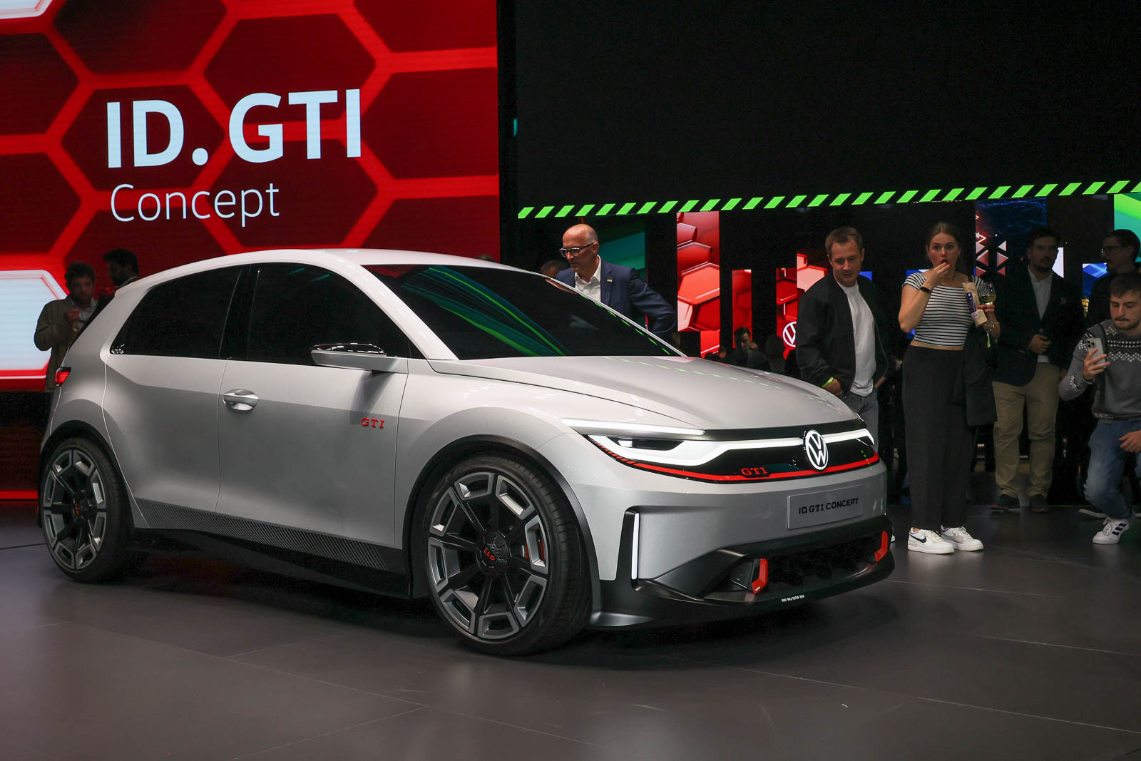 前日のフォルクスワーゲングループ・メディアナイトの報道の影響もあるのか、そこで初お披露目されたID.GTIコンセプトは、まわりから、一般の来場者が離れることがないほどの人気ぶり。