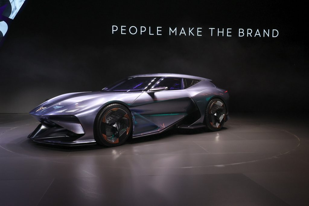 「未来のEVはセクシーでエモーショナルになれるということの証明」と、ウェイン・グリフィスCEOの言葉が紹介されているモデル。まるでゲームの世界から飛び出してきたようだ。
