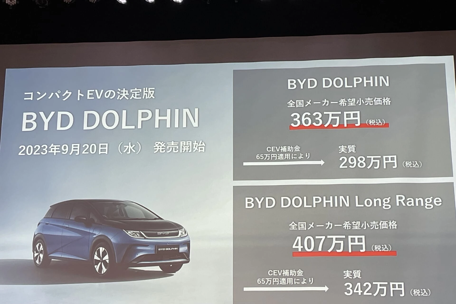 BYD Auto Japanは9月20日、日本で販売する2番目のモデルであるBEV(バッテリー電気自動車)「ドルフィン」の価格を発表し、発売も開始した。