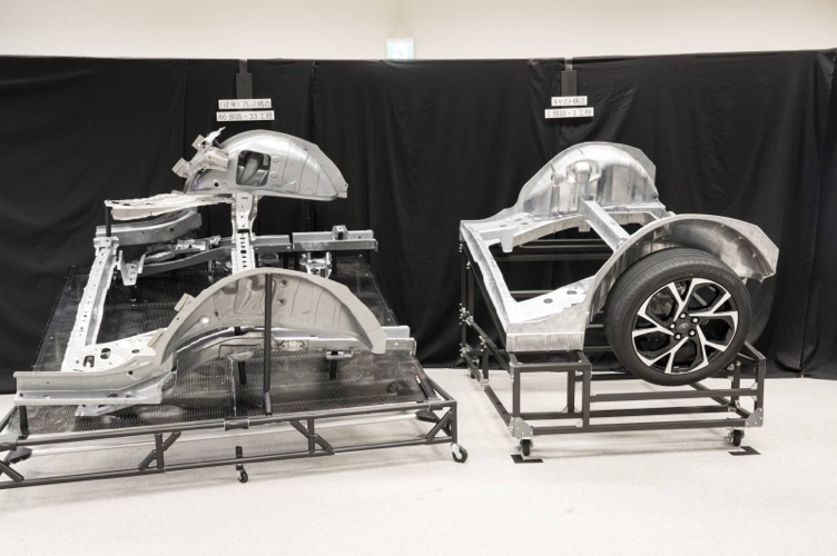 トヨタは2023年6月上旬に、静岡県裾野市で実施した「テクニカルワークショップ2023」でギガキャストによって製造した試作品を展示している。