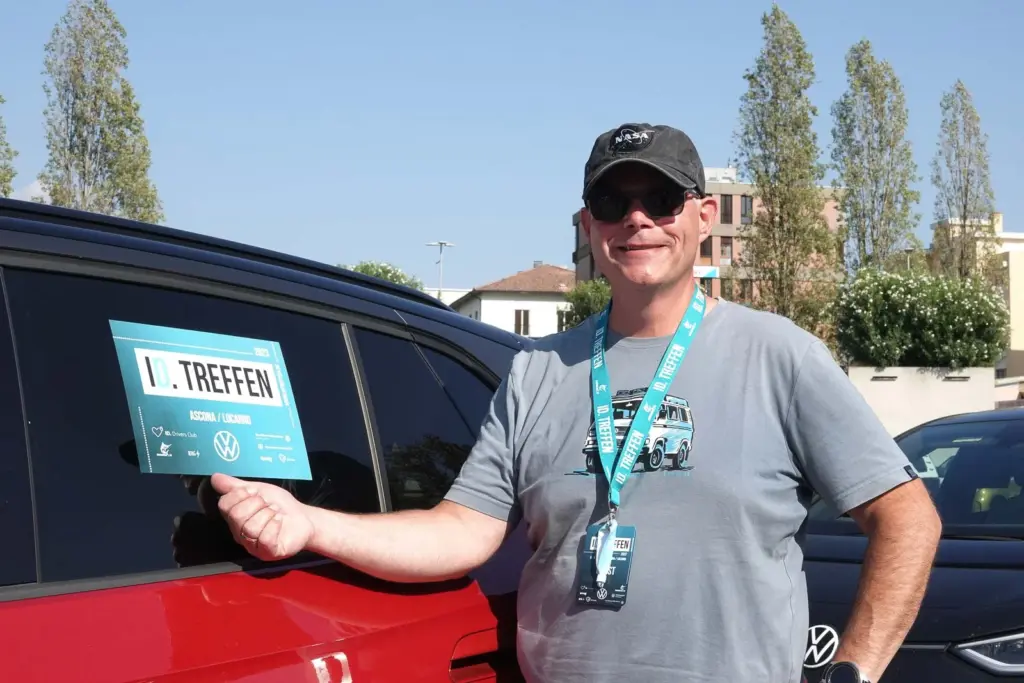 鮮やかな“キングズレッドメタリック”のID.4で登場したのは、ドイツのハノーファーからはるばるスイスに駆けつけたデュブラック・マルクスさん。