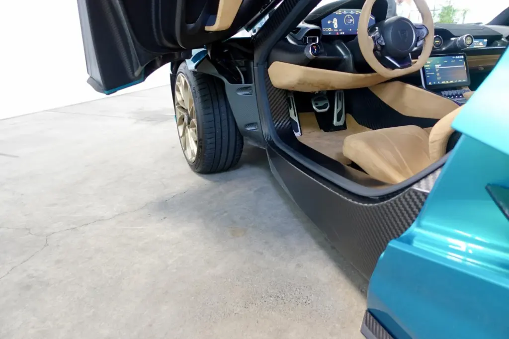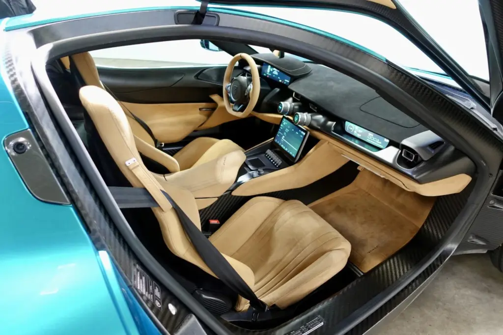 性能も破格で、およそ2,000psというとてつもない高性能パワートレインが搭載され、120kWhのバッテリーで490km(WLTP)の航続距離を持つ。その高性能ぶりは想像がつくと思うが、一部を紹介すると、0-100km/hは1.81秒、最高速度は410km/hに到達する。外観で目を引く専用の20インチホイールには、ミシュランの「パイロットスポーツ4S」を履いている。フロントは275/30R20、リアは315/35R20のサイズとなる。