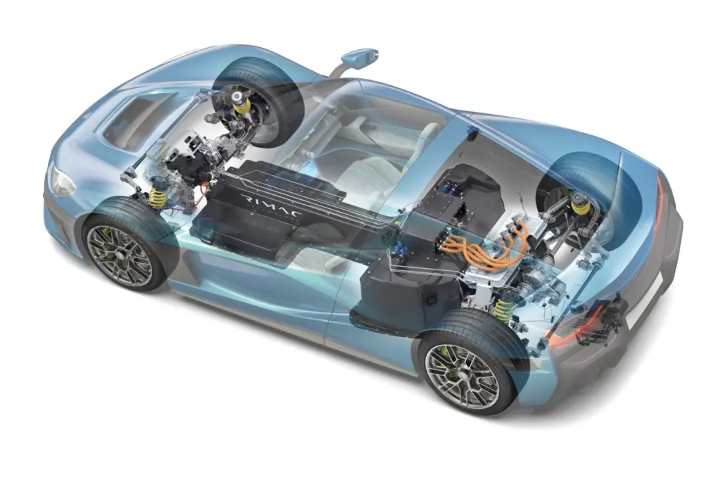 0-100km/hもそうだが、ドイツ・ニュルブルクリンク・ノルドシュライフェでは、量産EVの最速の7分05秒298というタイムを樹立。その秘訣はもちろん2,000psのパワーであることは間違い無いのだが、4つのホイールをそれぞれ独立制御できる「リーマック・オールホイールトルクベクタリング」と「アクティブエアロダイナミクス」と言われる空力性能に優れたボディデザインもあってこそだろう。フロントボンネットとリアウイングは可変式となって走行状態により可動するようだ。