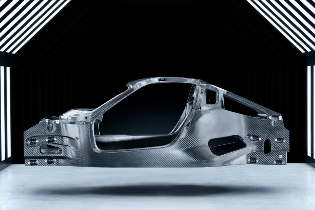 ちなみにボディはフルカーボンのモノコック構造。高い剛性と軽量化に寄与している。5年という開発期間の中には、45回のクラッシュテストも含まれており、安全性が徹底的に検証されている。