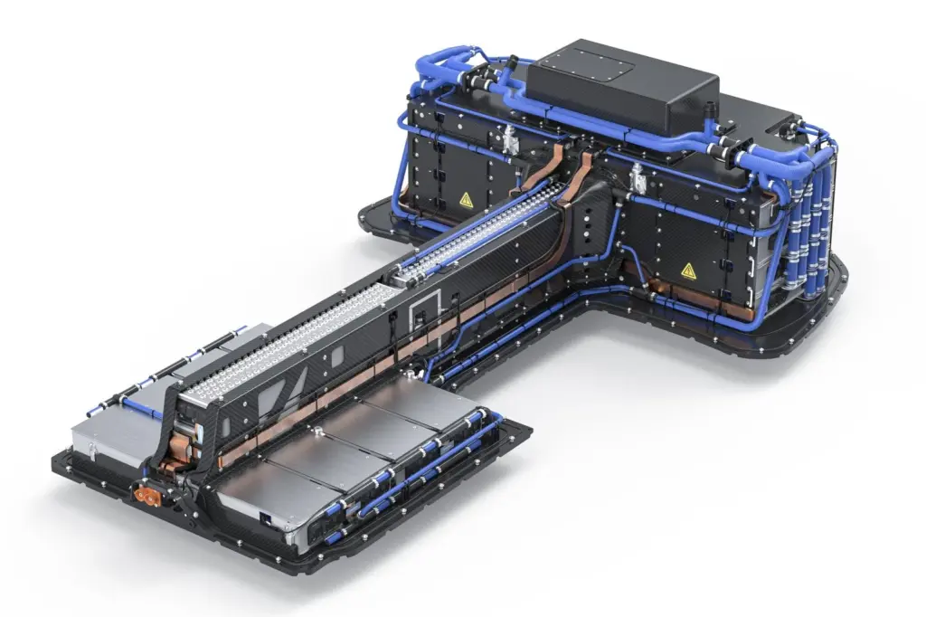 バッテリーは円筒型セルを採用し、独自の液冷液板設計の120kWhのパックとなっている。気になる充電事情だが、今回の個体はEU仕様なので「コンボ2」(CCS2)規格となっていたが、日本仕様は200Vの普通充電に加えて「CHAdeMO」に対応するとのこと。ただ、性能的には、最高出力500kWの急速充電と22kWのオンボードチャージャーを搭載しているため、リーマックがライアンスを組んでいるポルシェの急速充電が日本でも使えることになるようだ。