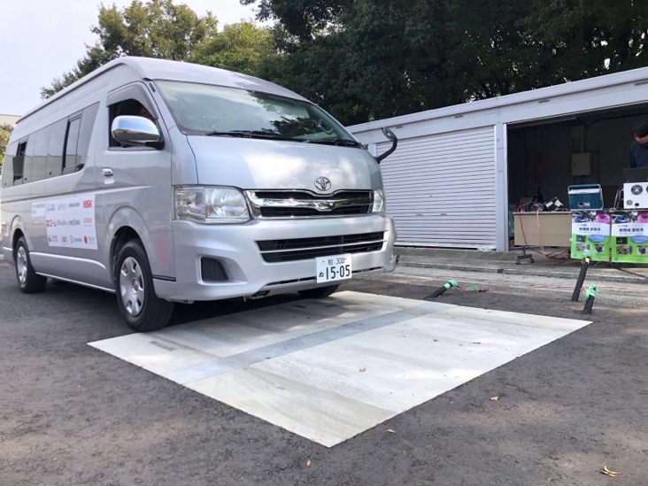 走行中充電(給電)のデモンストレーションが柏キャンパスで実施された。