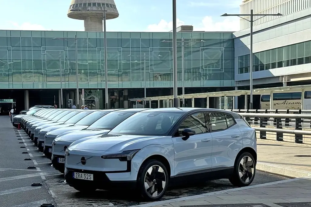 試乗の拠点となったバルセロナ空港には、淡い青の“クラウドブルー”と、薄い灰色の“ヴァイパーグレー”のEX30が、整然と一列に並んで、われわれの到着を待ち構えていた。私自身は、オンラインのワールドプレミアでPCのモニター越しにその姿を確認済みだが、実車を見るのはこれが初めて。遠目でもはっきりとボルボとわかる特徴を備えている一方、これまでのボルボと比べてクルマっぽさが薄れ、モダンで上品に仕立てあげられたエクステリアがすぐに気に入ってしまった。最近の新型車は、前後に全幅いっぱいのLEDライトストリップを配置するのが流行だが、それとは異なる表現をしているのも、EX30のユニークなところだ。