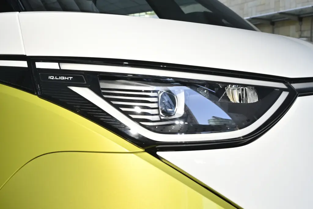エクステリアデザインは、先祖にあたるワーゲンバスの要素がふんだんに取り入れられている。切り詰められたフロントオーバーハングに、フロントマスクに鎮座する巨大なVWロゴ、ワーゲンバスではV字型に塗分けられたフロント部分をID.Buzzではボディパネルで表現するなど、安全基準が大きく異なる現代においてよくぞここまでワーゲンバスの要素をデザインに落とし込んだものだと感心する。