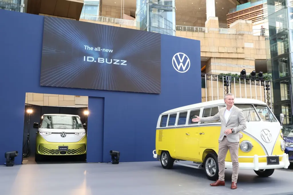 発表会では、舞台上にご先祖様であるType2が鎮座し、その隣へ末裔のID.Buzzが迎え入れられる格好で登場した。