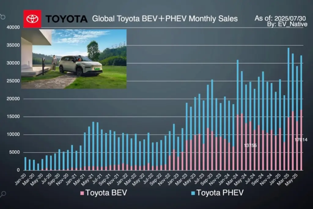 他方で、2025年6月度のBEV販売台数は1万7014台と、前年同月比+23.7%の成長を実現しているものの、この1〜2年ほどの販売の伸びと比較すると鈍化しているように見えます。これは、bZ3Xの販売が伸びたもののbZ3の販売が低迷していることが要因でしょう。