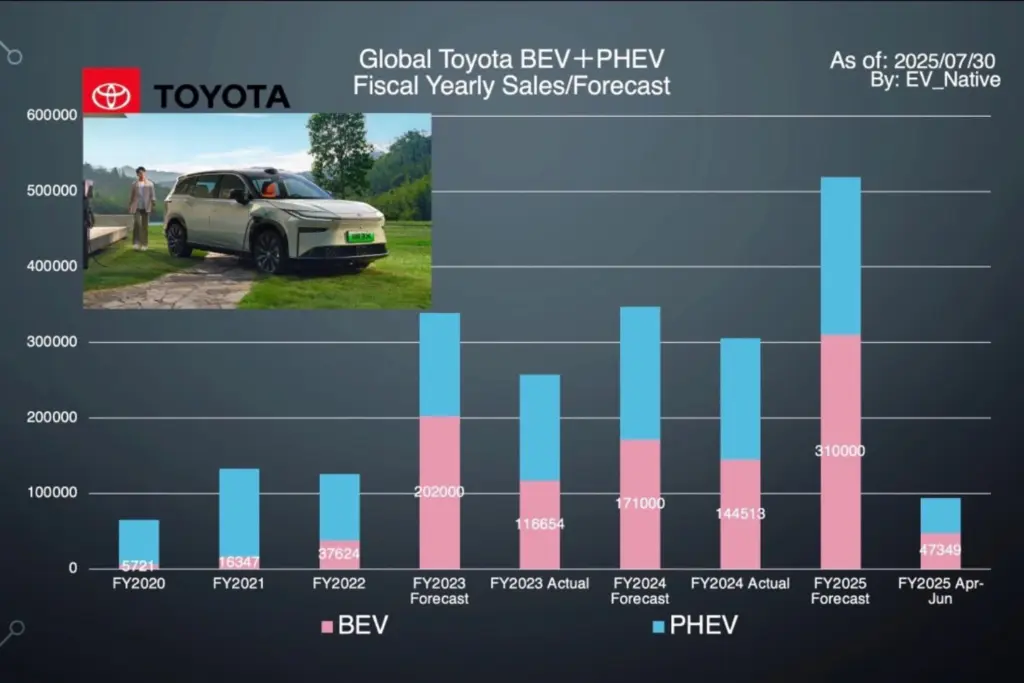 トヨタは、すでに2025年度のBEV販売目標をとして31万台という挑戦的な販売目標を提示しているものの、過去2〜3年のEVシフト達成率を踏まえると、目標達成を懸念せざるを得ないのです。