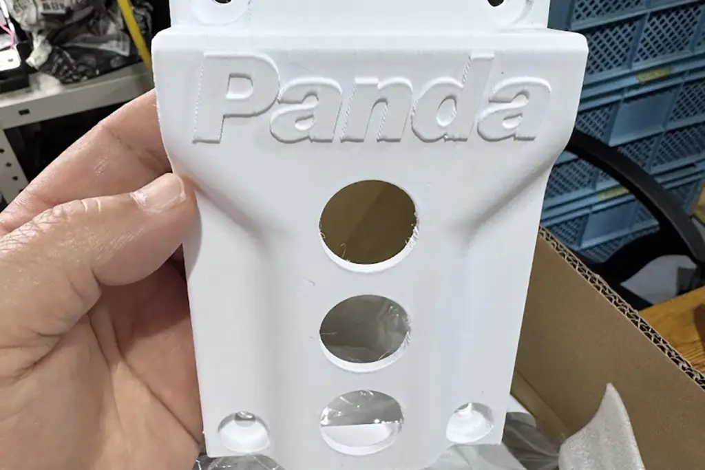 これは3Dプリンターで製作した、ドライブやリバース、ニュートラルなどのセレクタースイッチになるもの。「Panda」ロゴがカワイイ(これが取り付けられるのはいつの日か……)。