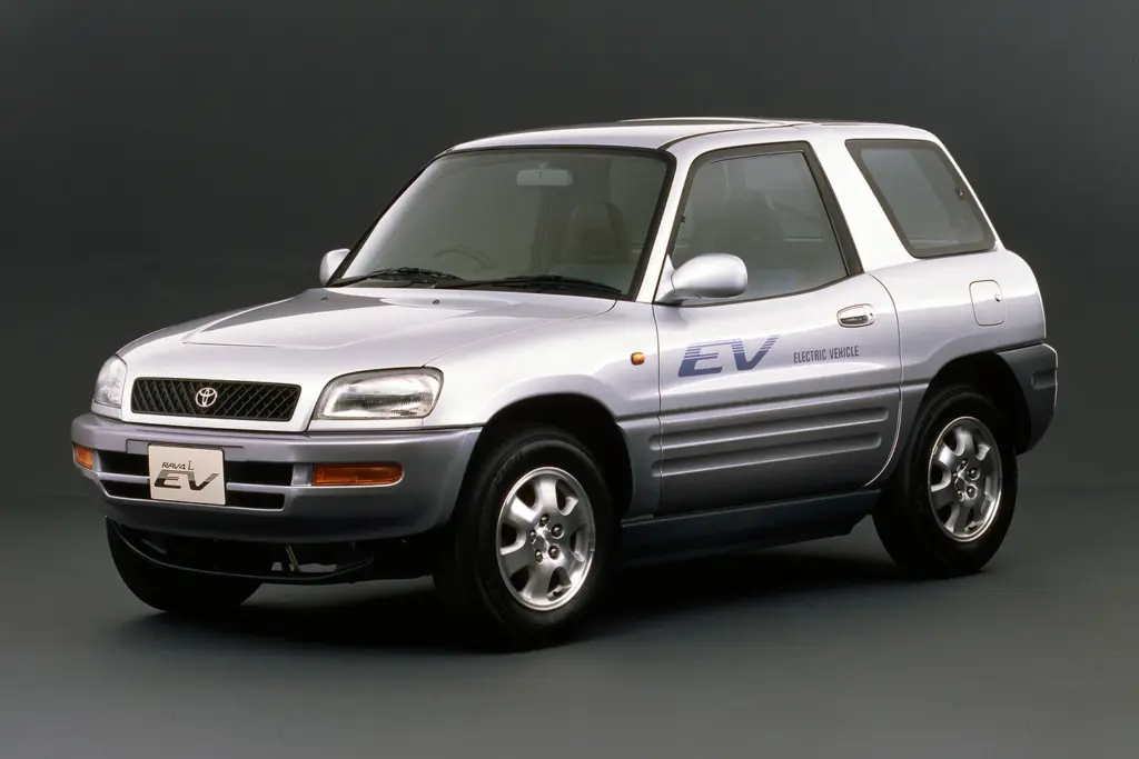 1996年8月に発売を開始したRAV4のEVモデルは、3ドアモデルをベースに高効率永久磁石式同期モーターと世界初のニッケル水素バッテリーを搭載。