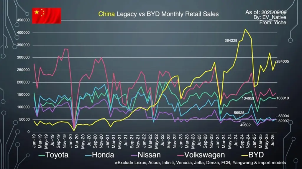 8月単体のPHEVとEREVの販売台数は41.4万台だったものの、これは前年比でマイナス成長です。このPHEV販売の減速というトレンドは、ごく短期的な中国市場の動向を見極める上で重要な視点でしょう。