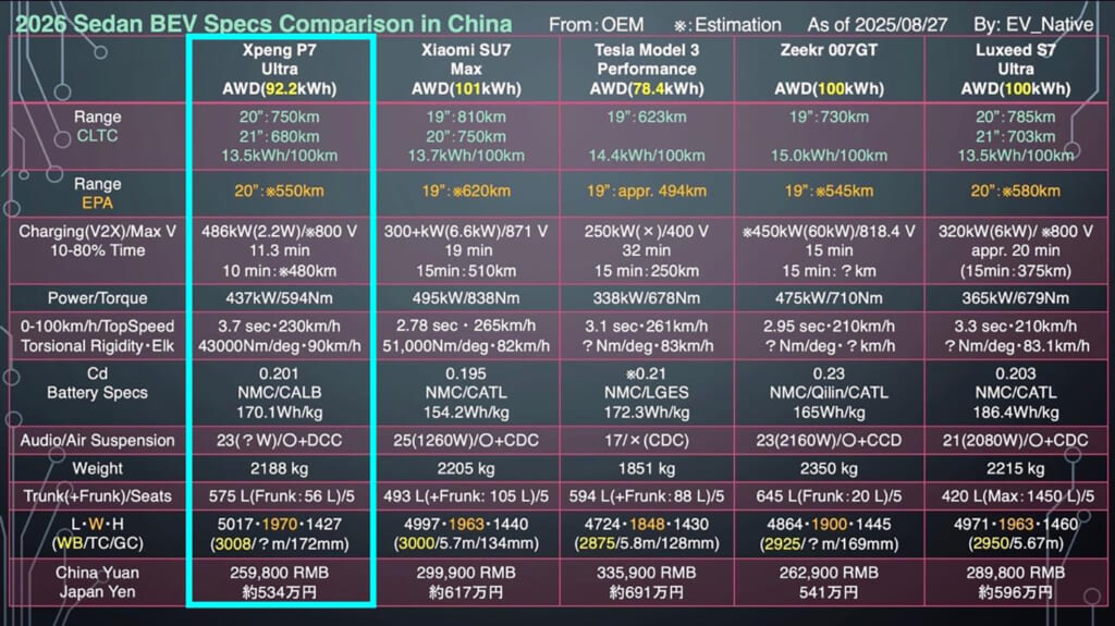 そして、XpengがG7からたった2カ月以内にローンチしてきたのが新型P7です。