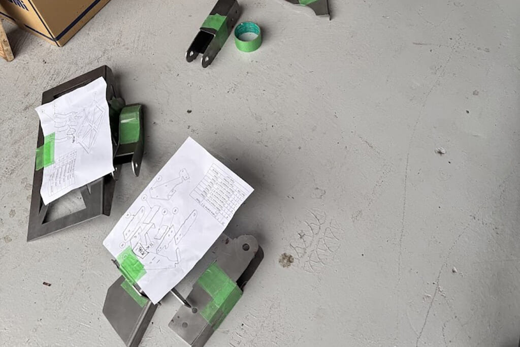 前回より引き続き、パワーユニットのブラケットやバッテリーを収める各パーツたちの整理を進めていきます。大物は、某ショップさんで溶接をお願いしたので、小物の整理です。