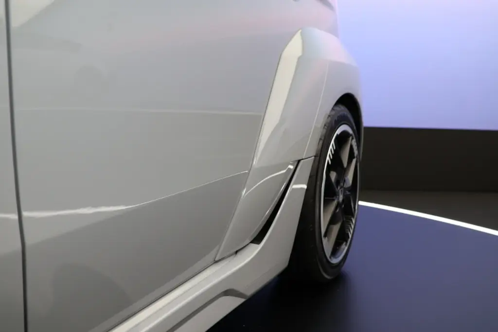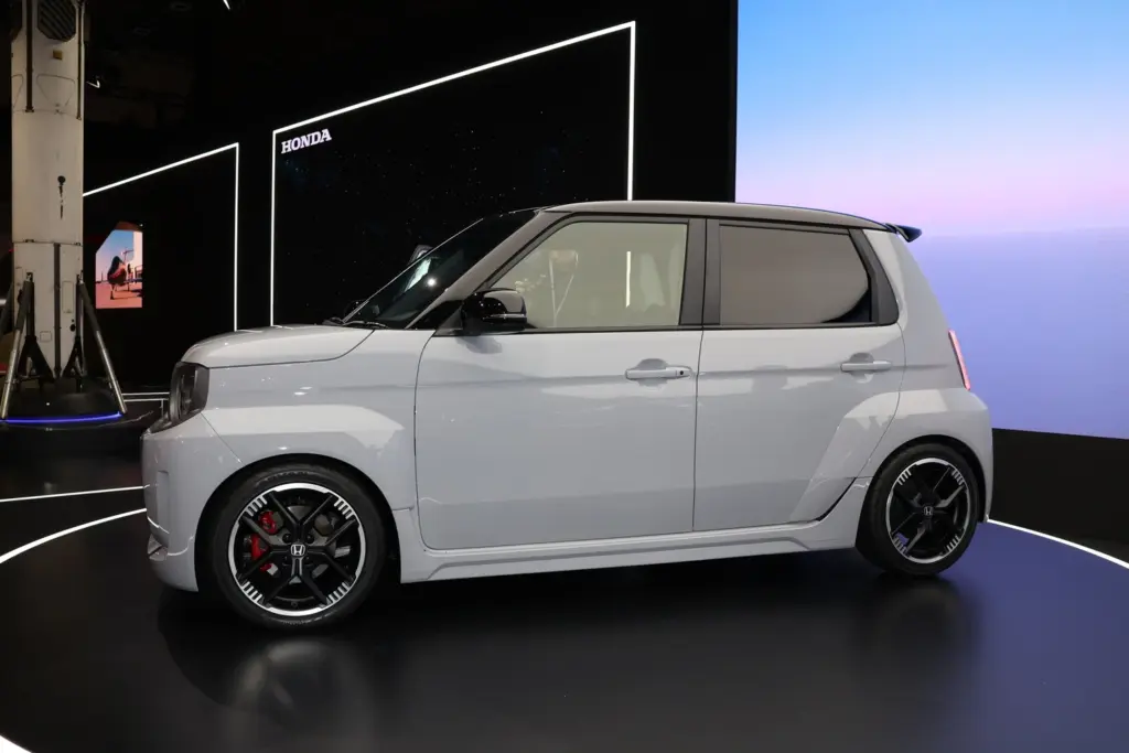 ベース車から大幅に拡幅されたブリスターフェンダーは、見た目の迫力もさることながらトレッドの拡大に貢献している。これにあわせてサスペンションの見直しを図り、走りとハンドリングを向上。具体的な数値は伏せられているが、ベース車のN-ONE e:に対し出力とレスポンスの向上が図られたパワートレイン、そして軽EV由来の軽い車体との相乗効果で、往年の「テンロクホットハッチ」を彷彿とさせるような走りになったと、ホンダブースの担当者は力強く説明してくれた。