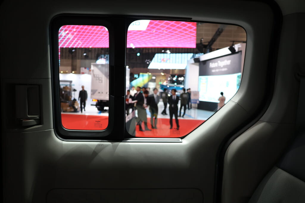 エクステリアは現在日本で販売されているバンタイプのどれとも類似しておらず、独創性を強く感じさせる。とくにフロント側面のグラスエリアは大きく、トヨタ・ハイエース、日産キャラバンの小さな窓とは真逆の開放的な印象を受ける。