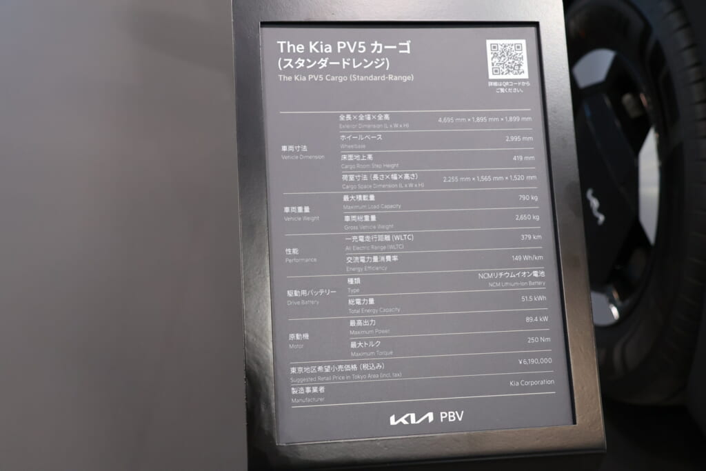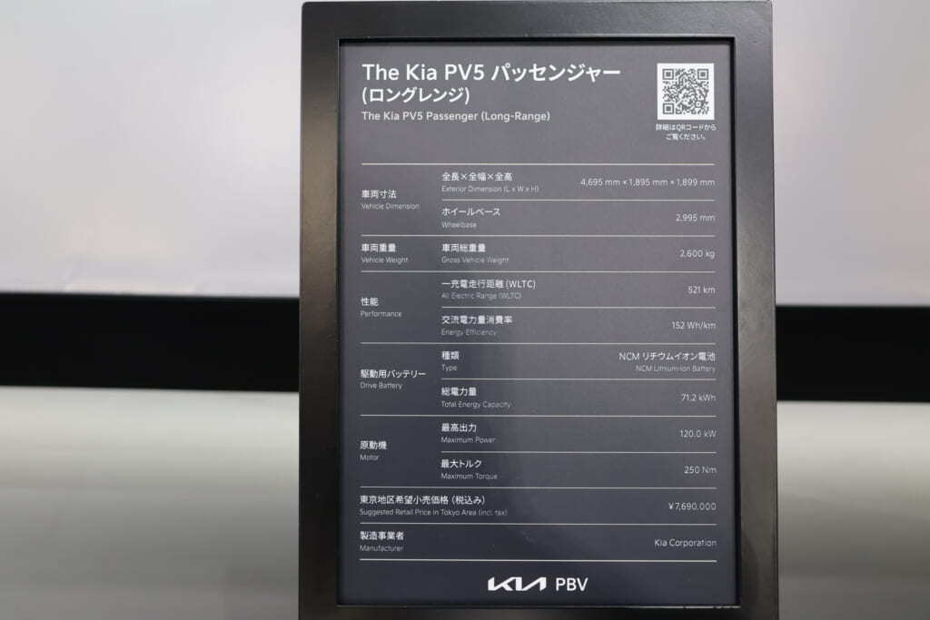 続いて、PV5のボディサイズや一充電走行距離、バッテリー容量に車両本体価格など、具体的なスペックについてみていこう。