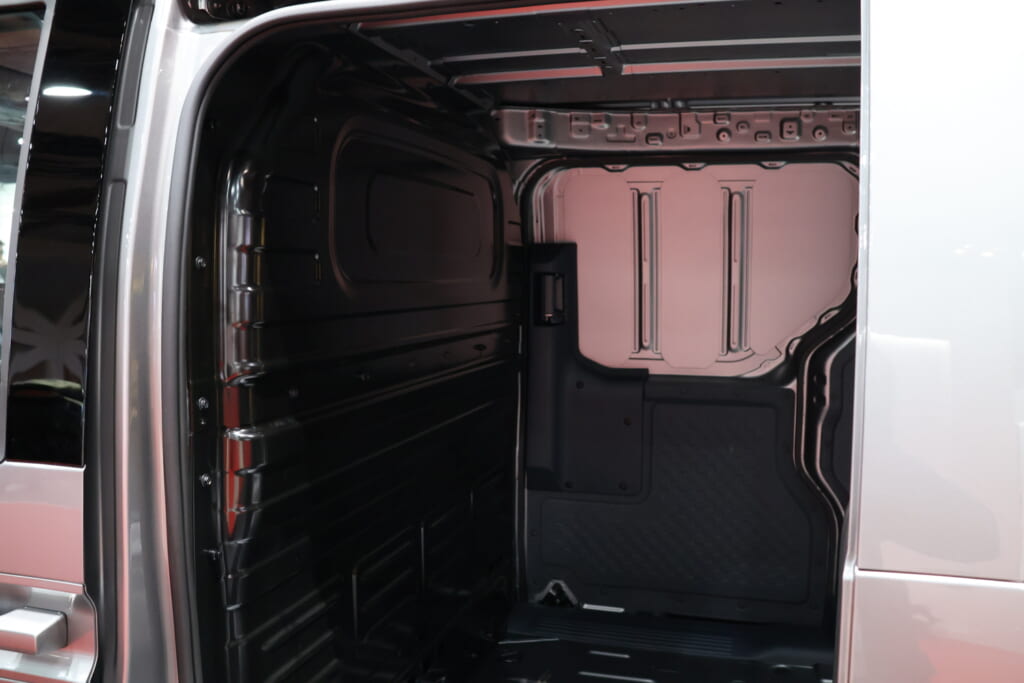 実際にカーゴのスライドドアを開けてみると、運転席直後にバルクヘッド(隔壁)が備わっており、荷室と運転席は完全に分離されている。