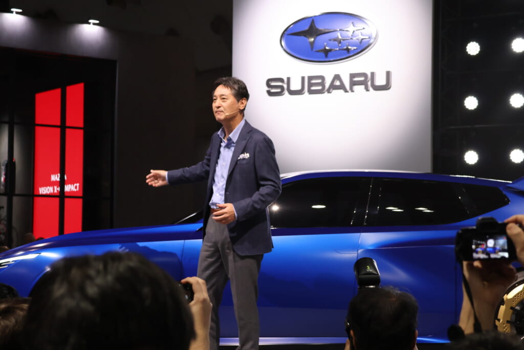 スバルはジャパンモビリティショー2025のプレスデーにおいて、大崎代表取締役がカンファレンスを実施。ブランドをより際立たせるため「パフォーマンス」と「アドベンチャー」というふたつの方向性を打ち出した。