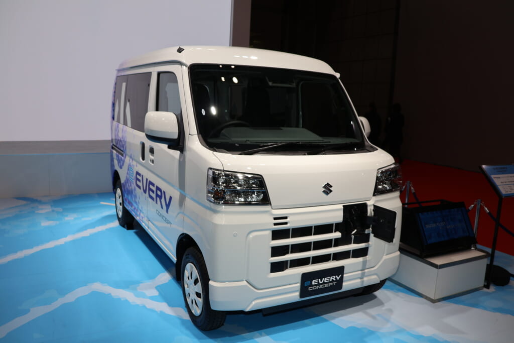 「eエブリィ・コンセプト」は、トヨタ・ダイハツ・スズキの3社共同開発によるBEVシステムを搭載した軽バンEVだ。ダイハツのハイゼットをベースに、ダイハツが生産を担う予定となっているが、バンパーの意匠はスズキ独自のものとなり、既存のスズキ・エブリィに印象を近づけている。