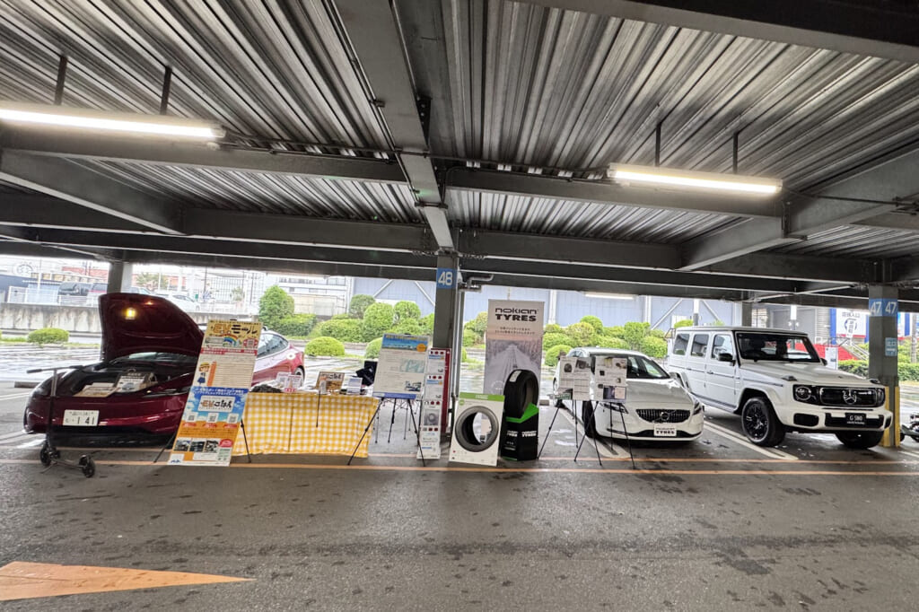 当日はあいにくの雨模様でしたが、会場が屋根のある大型駐車場だったこともあって傘も必要なく、国内外のEV約90台のオーナーさんが集まり懇親を深めました。