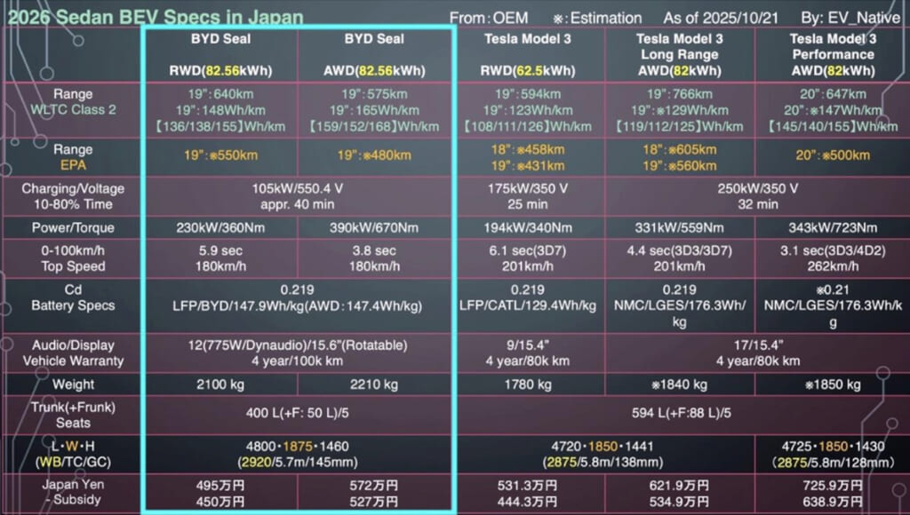 BYDが日本国内でシールの新型モデルを、2025年10月30日より投入しました。電動サンシェードや電子制御サスペンションの導入など装備内容を充実させつつ値下げも実施しています。