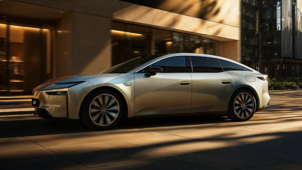 その上で、プレミアムセグメントとして高級感のある内外装デザインや装備内容を網羅してきています。エクステリアでは、bZ3Xと同じようなフロントデザインを採用しながら、テールランプには主流の一文字デザインを採用。