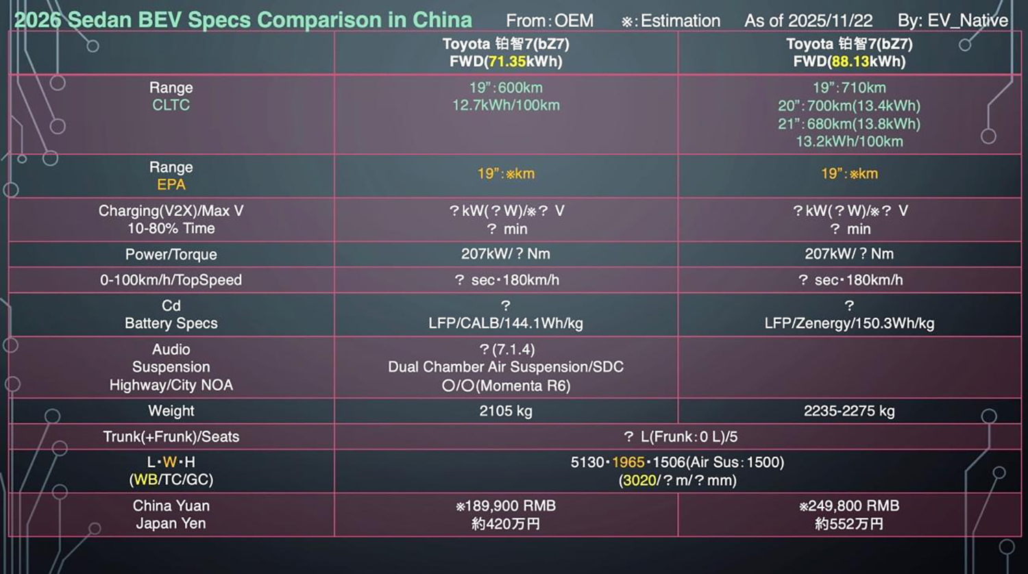 そして、このプレミアムセダンセグメントで苦しい立ち位置に追いやられるのではないかと感じるのがレクサス新型ESのEVバージョンの存在です。新型ESには中国で重要視されているハイエンドADAS、スマートコクピットの分野では、bZ7のように中国現地サプライヤーとの提携は行われない見通しです。その上でESは30万元以上という値段設定となり、シャオミSU7を筆頭とする競合よりもさらに高額です。