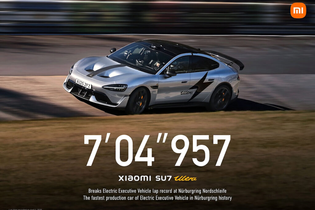 まずは「エグゼクティブカー」から。「エグゼクティブカー」では、2025年に新たなレコードが更新されている。ニューレコードを叩き出したのは、Xiaomi SU7 Ultraの「トラックパッケージ」だ。スマートフォンやIoT家電ブランドとして知られる中国企業のXiaomi(シャオミ)だが、電動スポーツセダンとしても本格的。