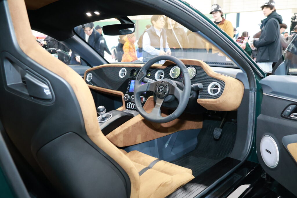 パワートレインの主要部となるeアクスルには出力200kWのヤマハ発動機製「アライヴEE」が採用されているほか、サスペンションまわりの開発にはHKSが、そしてeアクスル用の専用フルード開発にはエネオスが参画するなど、日本の各企業がこのEVスポーツクーペの完成に向け協力体制を敷き、日本で開発走行を重ねている。