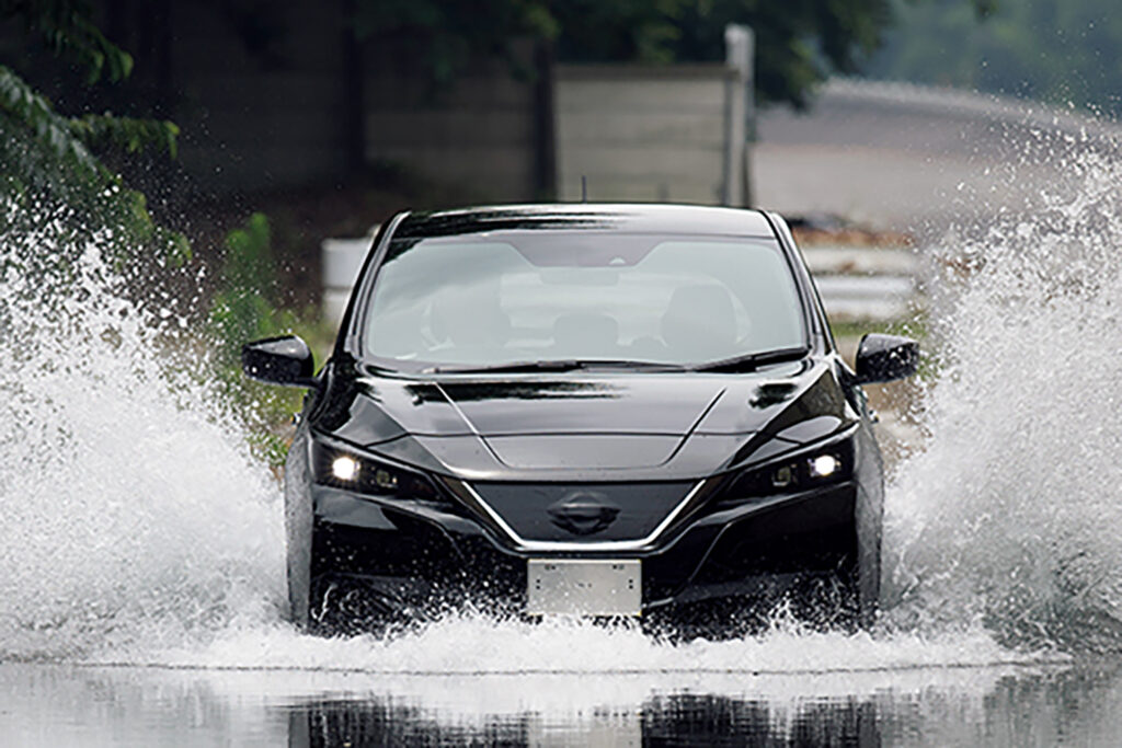 そもそも路面状況を確認しにくくなるし、また溜まった水の水圧でクルマが押し戻されそうにもなる。そこを、高い速度のまま走ろうとすれば、何かに衝突したかのような衝撃を受けるかもしれない。それに驚いてアクセルを戻せば、クルマは止まってしまう。そしてエンジン車は、二度と動けなくなるかもしれない。