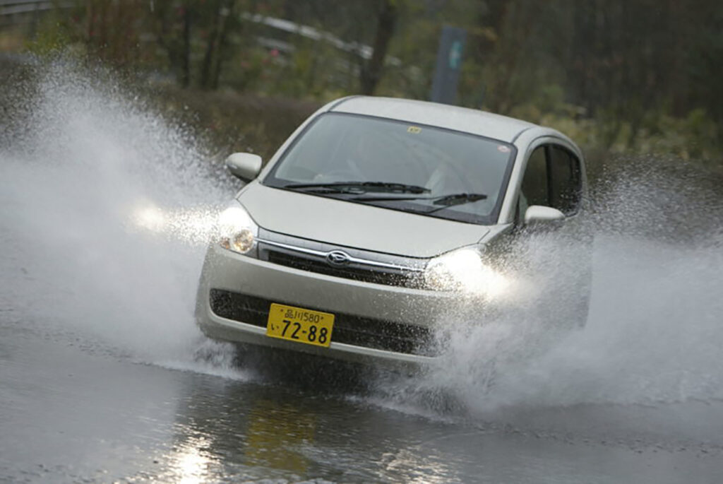 そうなると、大雨による河川の氾濫などのほか、立体交差などでは道路の低い場所に雨水が溜まり、冠水しやすくなる。そればかりか、市街地の道路でも排水が間に合わず、路面一体に雨水が厚く溜まることもある。やむをえずそうした場所を通り抜けなければならないこともあるかもしれない。そのとき気を付けるべきは、速度だ。
