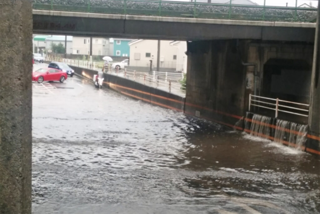 冠水した道路をクルマで走るのは危険